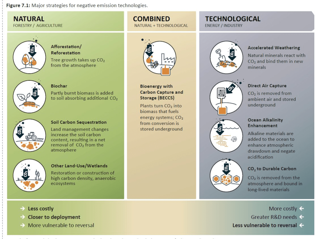 Come nel rapporto speciale +1,5 °C, la cattura – con sequestro ed eventuale trasformazione – del carbonio dall’atmosfera fa parte delle soluzioni negli scenari a lungo termine. E’ “responsabilità dell’emittente” che attualmente paga $60 a tonnellata di carbonio emessa o li riceve come incentivo per sequestrarla, scrivono Myles Allen e Hugh Helferty su The Conversation.