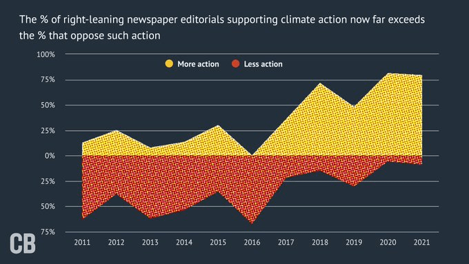 Come spesso da Carbon Brief, è un saggio con grafici interattivi e un sacco di dati. Vale la pena di leggerlo anche per capire come via via è cambiato il linguaggio e, salvo poche testate marginali, anche nei giornali conservatori dal 2019 gli argomenti riguardano la transizione energetica.