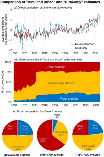 Richardson glissa sul tentativo di discreditare il lavoro fatto dal gruppo Berkeley Earth quando era ancora finanziato dai Fratelli Koch, una BigOil&Coal che voleva e vuole tuttora liberarsi di quegli imbroglioni dell’IPCC. Berkeley Earth aveva già analizzato le temperature rurali e urbane con metodi un po’ più seri e concluso in una pubblicazione uscita nel 2013 che nelle grandi città l’effetto esiste, ma “sulla temperatura media terrestre è indistinguibile da zero“: